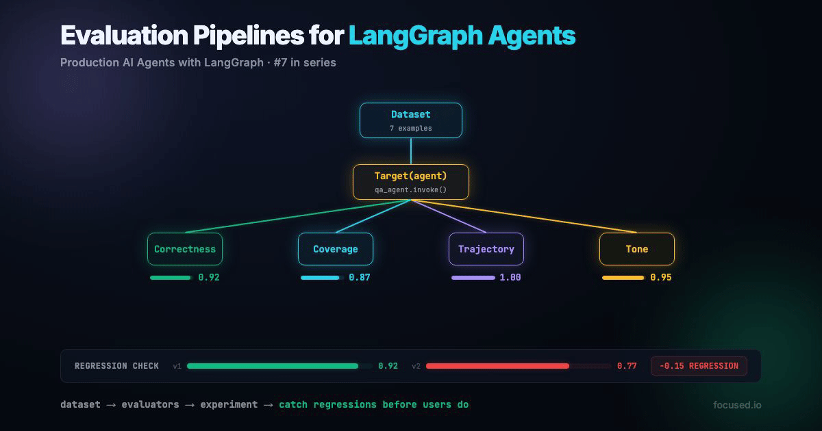 Build evaluation pipelines for LangGraph agents using LangSmith. Learn how to create datasets, run LLM-as-judge evals, and detect regressions before they reach production. Ship agent changes with confidence, not guesswork