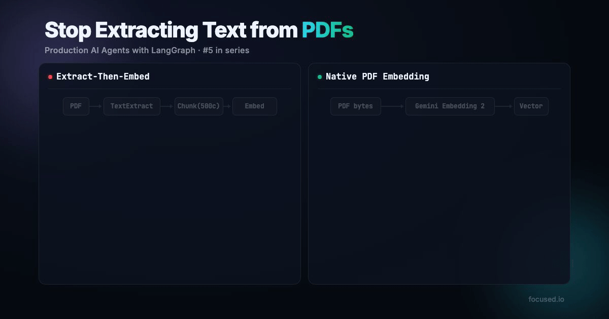 The extract-then-embed pipeline was built around the limitations of text-only embedding models. Gemini Embedding 2 removes that limitation. If your documents have visual structure — and most real-world documents do — embedding the document directly produces better vectors than embedding extracted text. The pipeline simplifies from five lossy steps to one, with fewer dependencies, fewer failure modes, and better retrieval.